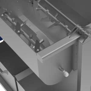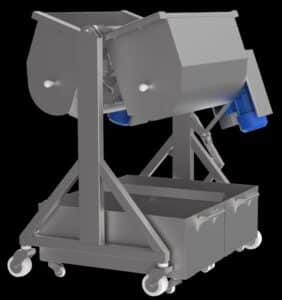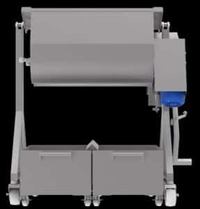 La MC 120 se vuelca, abriendose al medio y puede caer la farsa en bateas plásticas como las de carnicerías o pueden adquirir aparte las bateas como las que se ven en la fotografía en acero inoxidable que tenemos también para la venta.